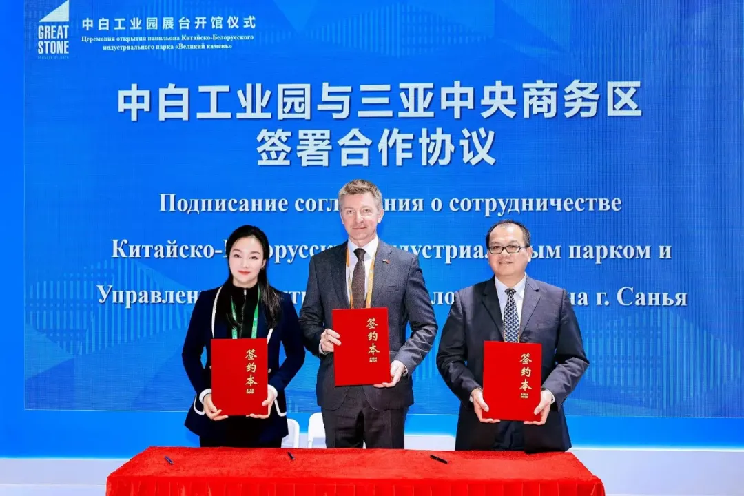 Sergei Lukashevich, First Deputy Minister of Foreign Affairs of Belarus, Wang Kaixuan, Level I Inspector of the Department of Eurasian Affairs of China's Ministry of Commerce, Lebedyantsev, First Deputy Head of the Administrative Committee of the China-Belarus Industrial Park, and Li Xiaoyu, Member of the Standing Committee of the Party Committee and Vice President of China National Machinery Industry Corporation (Sinomach) attended the ceremony. The agreement was signed on behalf of the two parks by Lebedyantsev, First Deputy Head of the Administrative Committee of the China-Belarus Industrial Park, Cai Zhiyong, General Manager of China-Belarus Industrial Park Development Co., Ltd., and Chen Jia, Assistant to the Administrator of Sanya Central Business District Administration.